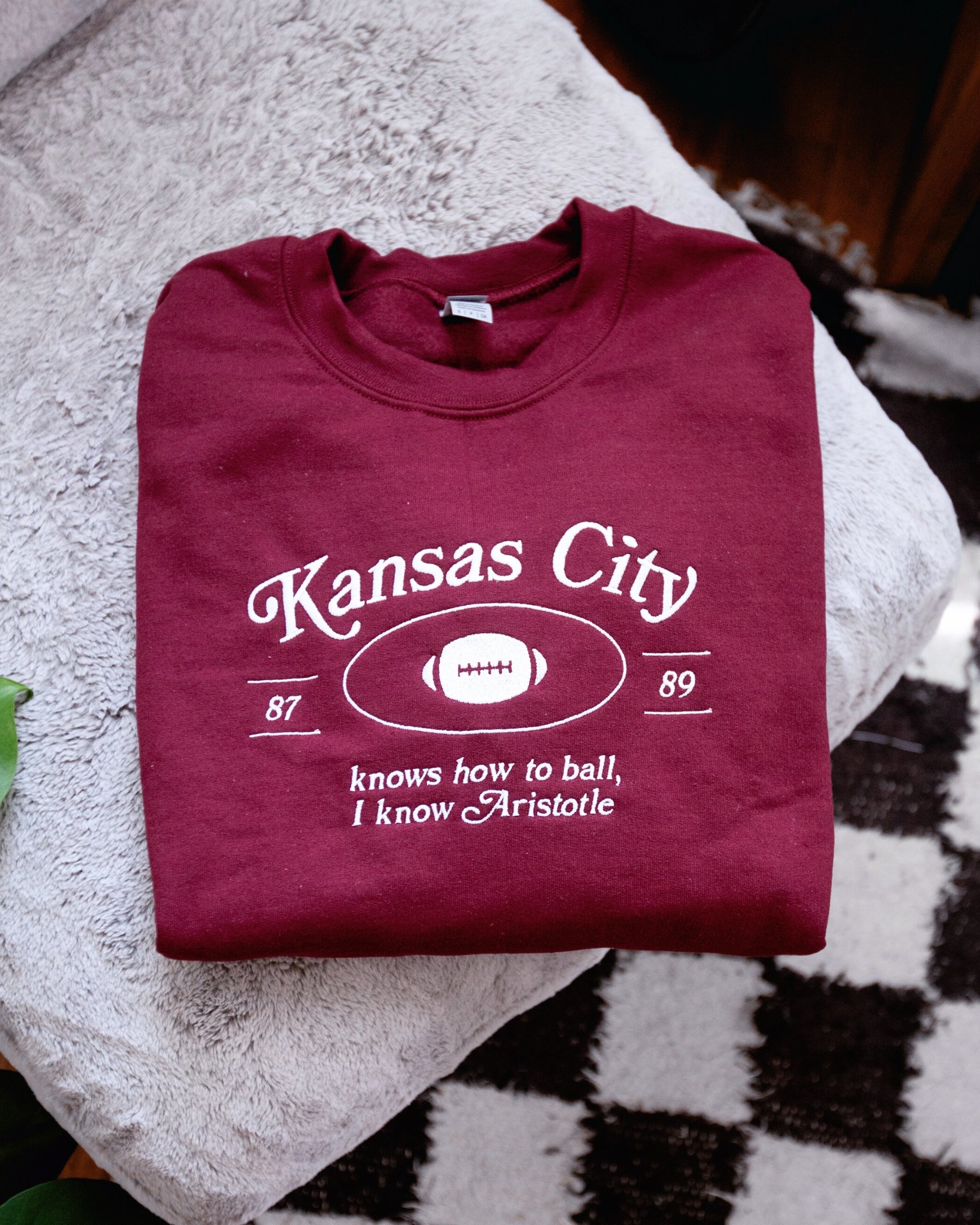 Rep Kansas City and your favorite celebrity couple with this embroidered sweatshirt. Available in White, Red, and Maroon.